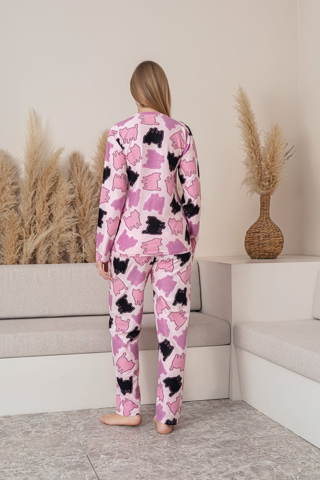 Το σετ περιλαμβάνει μακρυμάνικη μπλούζα και παντελόνι με λάστιχο στη μέση για τέλεια εφαρμογή και άνεση όλη τη νύχτα.