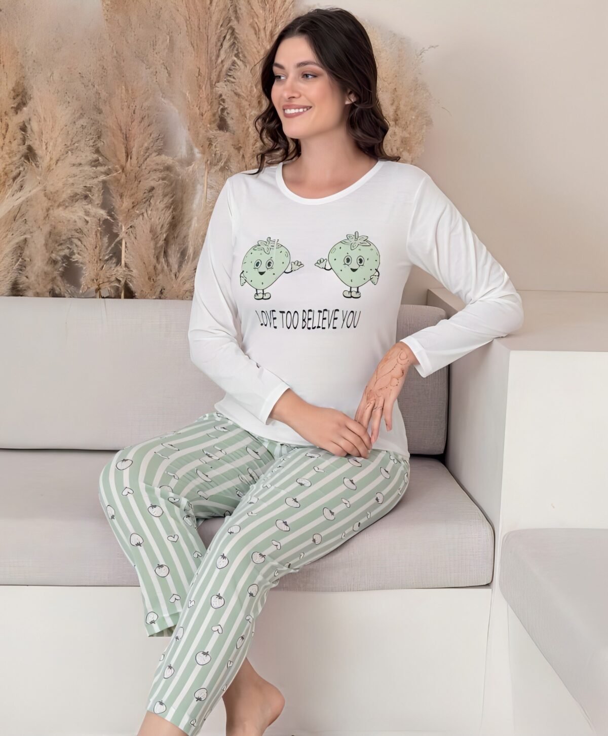 Το σετ περιλαμβάνει μακρυμάνικη μπλούζα και παντελόνι με λάστιχο στη μέση για τέλεια εφαρμογή και άνεση όλη τη νύχτα.