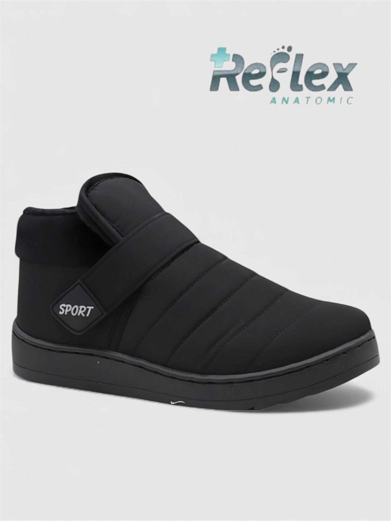 Γυναικείο χειμερινό παπούτσι Reflex Anatomic με αδιάβροχο υλικό, velcro λουράκι και άνετη αντιολισθητική σόλα για ζεστασιά και πρακτικότητα.