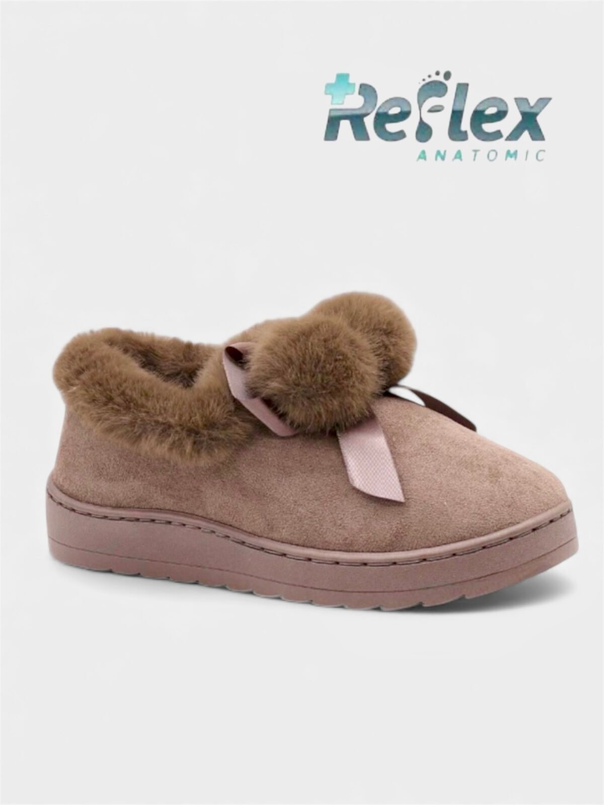 Γυναικείο ανατομικό χειμερινό υπόδημα Reflex Anatomic με suede υφή, γούνινη επένδυση και ελαφριά άνετη σόλα για ζεστασιά και καθημερινή άνεση.