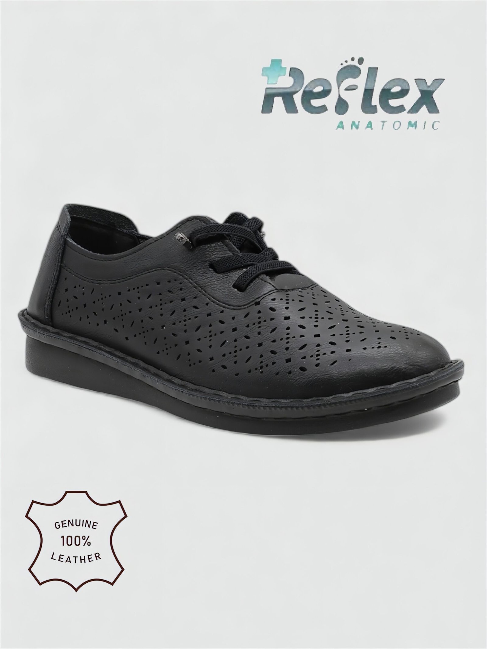Γυναικείο ανατομικό δερμάτινο παπούτσι Reflex Anatomic με διάτρητο σχεδιασμό, άνετη σόλα και σταθερή εφαρμογή για καθημερινή άνεση.